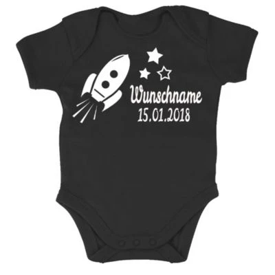 • Ihr Body erhält das Motiv Rakete und wird mit dem Wunschnamen und Geburtsdatum, in der von Ihnen gewünschten Farbe, individualisiert