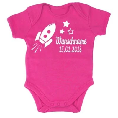 • Ihr Body erhält das Motiv Rakete und wird mit dem Wunschnamen und Geburtsdatum, in der von Ihnen gewünschten Farbe, individualisiert
