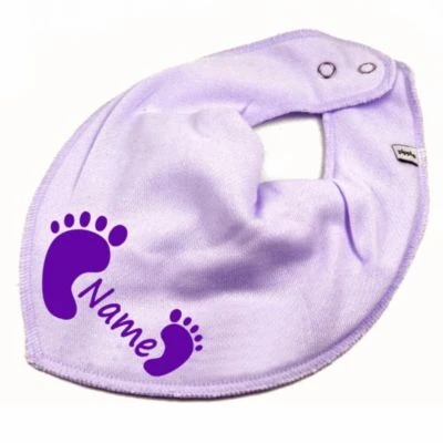 • Ihr Halstuch erhält das Motiv Füßchen und wird per Flexdruck mit Ihrem Wunschnamen oder Text individualisiert