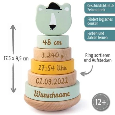 • Stapelturm aus Holz mit Tiermotiv, ein Must-Have-Spielzeug für Kinder
