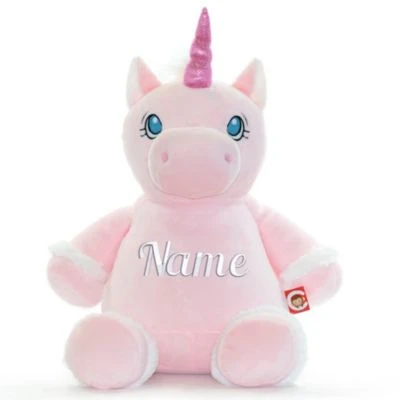 • Die personalisierte Stickerei erfolgt auf den Bauch des Einhorns und macht das Kuscheltier zum Unikat