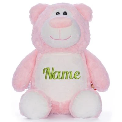 • Die personalisierte Stickerei erfolgt auf den Bauch des Bären und macht das Kuscheltier zum Unikat